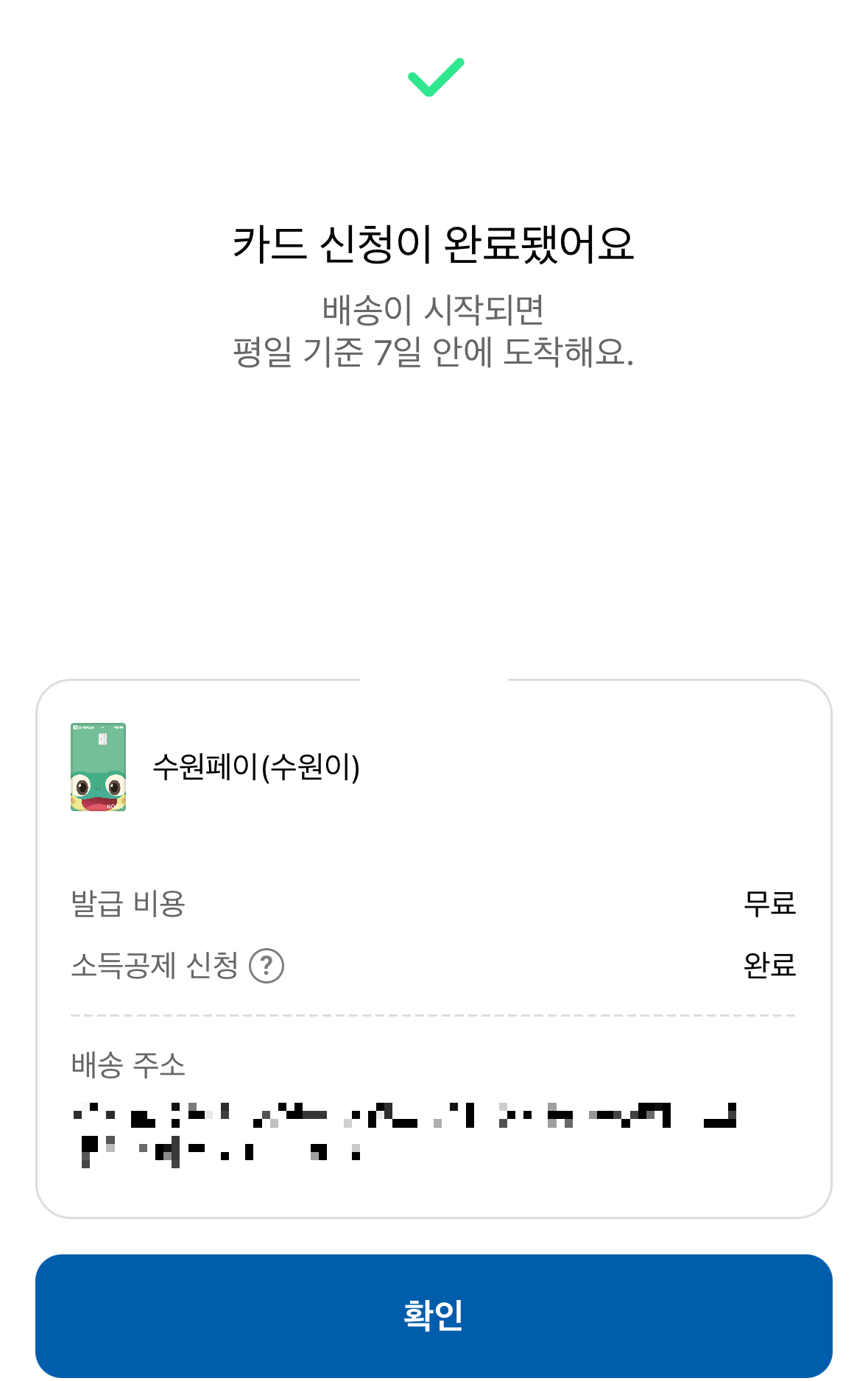 회원가입 후, 앱에서 수원페이 카드를 신청하세요. 집으로 카드를 배송받거나, 가까운 오프라인 발급처(행정복지센터 등)에서 즉시 발급받을 수도 있습니다.