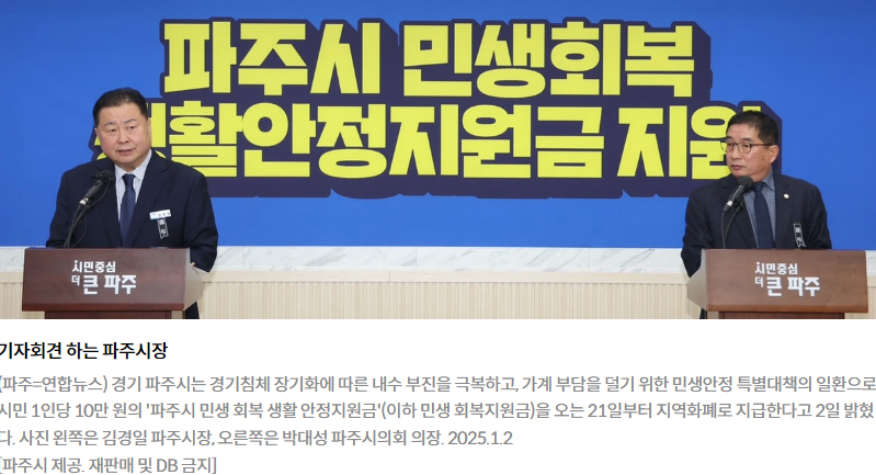 이런 상황에서 파주시는 시민들의 생활 안정과 지역경제 활성화를 위해 특별한 대책을 내놓았습니다. 바로 파주시 민생회복지원금 지급 소식입니다.