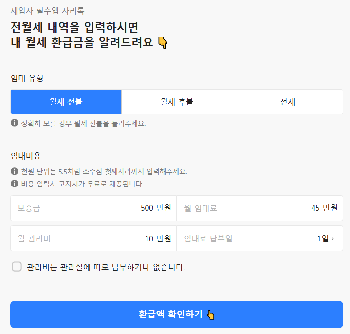 - 자리톡에서 환급 가능 금액을 계산한 후, 최종 승인 시 환급금이 계좌로 입금됩니다. 일반적으로 1~2개월 내에 환급 절차가 완료됩니다.