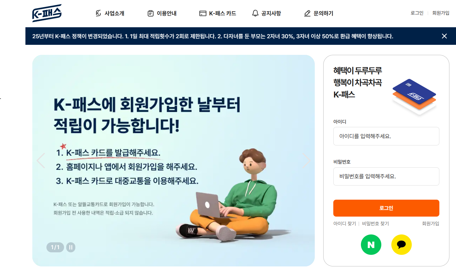 - K-패스 홈페이지 또는 앱을 통해 회원가입