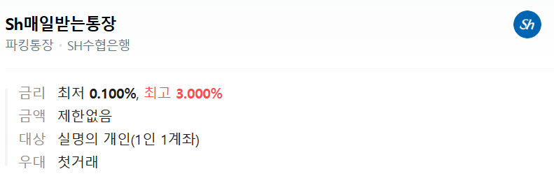 1. 수협은행 SH 매일받는 통장