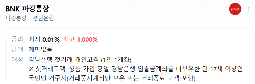 3. BNK 경남은행 파킹통장 — 5천만원까지 고금리