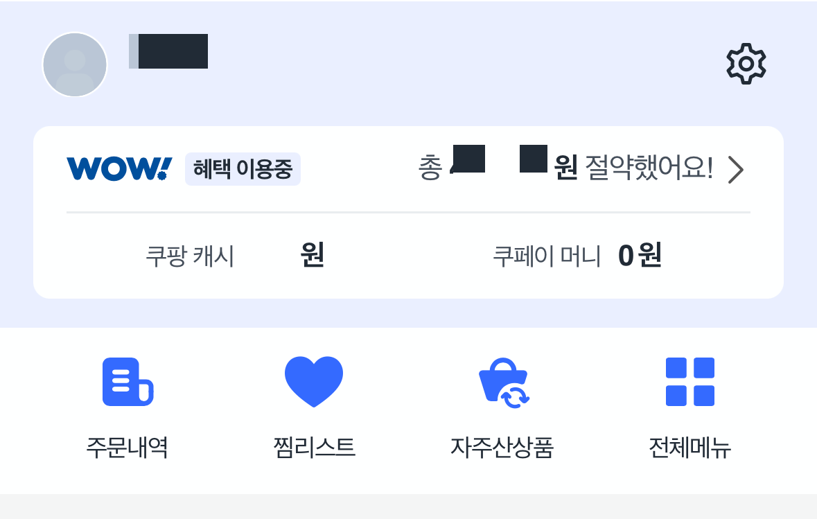 - 쿠팡 앱 실행 후 하단 메뉴에서 마이쿠팡을 선택
