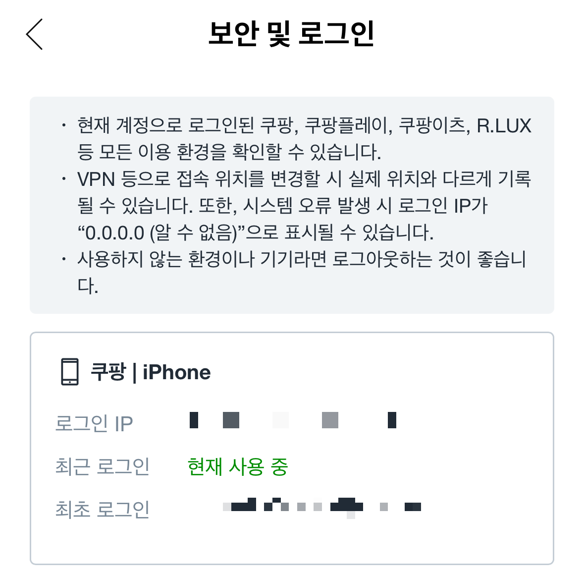 가장 먼저 할 일은 내 계정의 로그인 기록을 살펴보는 것입니다. 요즘처럼 쿠팡 개인정보 유출 관련 이슈가 커지는 상황에서는 로그인을 정기적으로 확인하는 것만으로도 큰 피해를 예방할 수 있습니다.