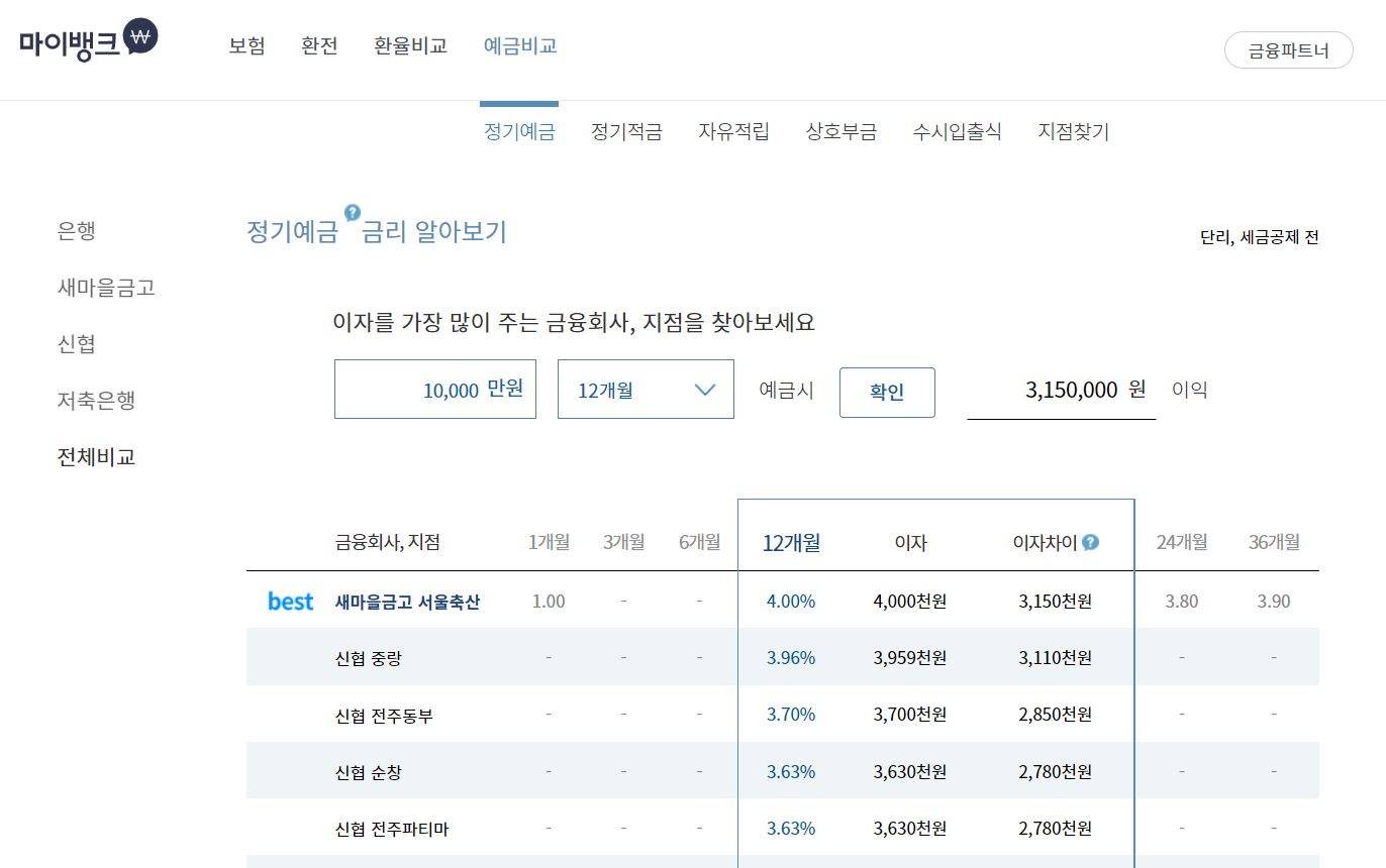 정기예적금에 가입하시는 분들이라면 이율이 가장 높은 곳에 가입하시려고 하실 겁니다. 그래야 이자를 조금이라도 더 받을 수 있으니까요. 가장 이율이 높은 정기예금 찾는 방법 준비해봤습니다.