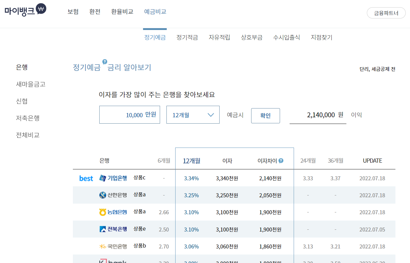 은행별 예적금 높은 상품 찾는법