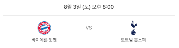 | 2차전 | 2024년 8월 3일(토) 20:00 | FC 바이에르 뮌헨 vs 토트넘 홋스퍼 FC |