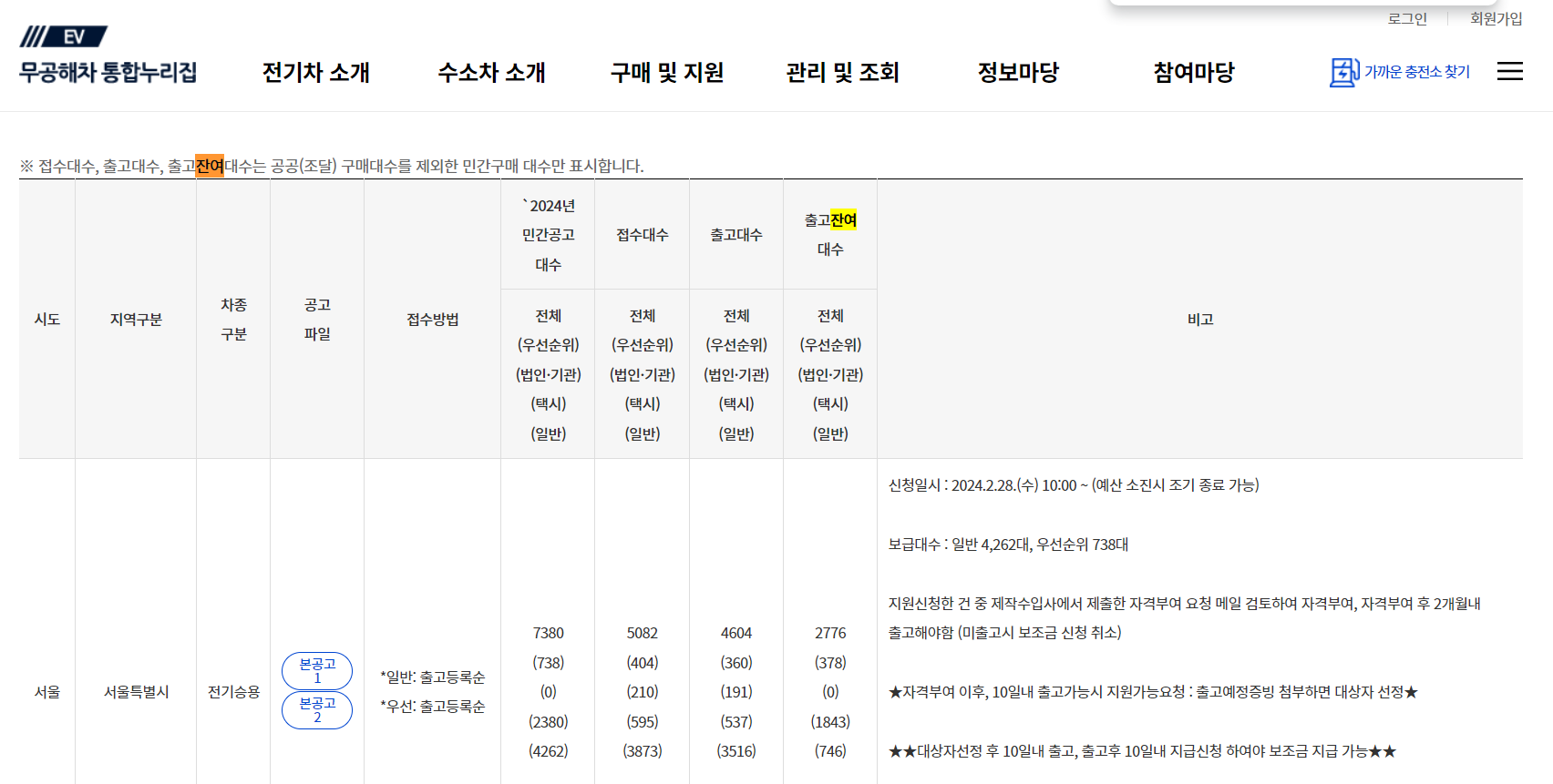 아래 링크에 접속하셔서 우리 지역 '출고 잔여 대수'를 확인해보세요.
