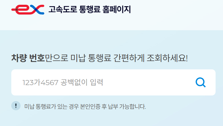 위 링크에 접속하여 미납 통행료 조회하기 버튼을 클릭합니다. 차량 번호 조회칸에 공백없이 차량 번호를 입력하신 후 조회 버튼을 클릭합니다. 만약 미납된 통행료가 있는 경우에는 본인 인증 한 후에 미납 요금을 결제할 수 있습니다.