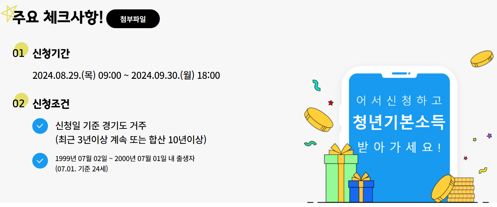2024년 9월 30일(금)까지 겅기도 청년기본소득 3분기 신청기간이므로 신청 절차, 지원 조건 등에 대해 알아보겠습니다. 지원대상이 되는지, 신청 가능 여부를 확인하고 싶으시면 이 글을 계속 읽어주시기 바랍니다.